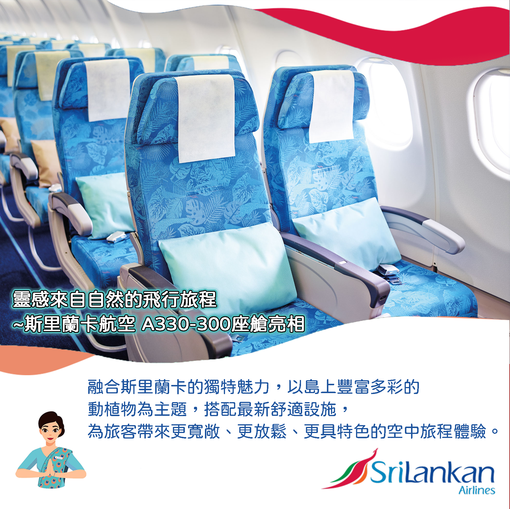 斯里蘭卡航空公司自1979年成立以來,屢屢憑藉著卓越的服務、舒適的飛行體驗以及安全可靠成功榮獲各類獎項殊榮。斯航的樞紐位於風景如畫的可倫坡班達拉奈克國際機場,航網遍布全球62個國家、114個目的地,包括: 歐洲、中東、南亞、東南亞、遠東區、北美及澳洲等地區。我們擁有包含A320、A321、A321 neo、A330-200及A330-343等24架先進機型,並提供寬敞舒適的座椅及配備最新的螢幕娛樂系統,讓您在飛行旅途中體驗超高畫質的視覺享受。除此之外,透過我們全新的預訂應用程式,您也可以輕鬆快速地搜尋、預訂機位,還可以預先購買行李超重並同時獲得折扣優惠以及預先辦理線上登機手續等服務,讓您的旅行更加便捷舒適。