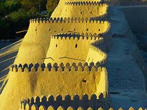 1990 年 UNESCO 收錄世界文化遺產,保留最完整、最壯觀的汗國古城!希瓦古城,有 2400 年歷史,為花喇子模汗國一部份,因阿姆達雅河供水問題,花喇子模汗國於 1643 年遷都於此。八世紀初,阿拉伯人征服花喇子模汗國,此後來自波斯及西方商務不斷,逐漸繁榮起來,希瓦成為古絲路上的必經之地,也成為古代的貿易重鎮。