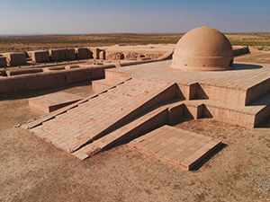 中世紀建築寶典,皇冠華美底座-『 2000 年 UNESCO 收錄世界文化遺產』沙赫里薩布茲(Shakhrisyabz)古城,是中亞霸主─帖木兒的故鄉,城裡所有建築和街道都以他為名。他不只在此生長成年,也是他的父親、精神軍師和他最大兩個兒子的陵墓所在,甚至在此建造自己的地下陵寢,相信從此可榮登阿拉的寶座,沙城因此成為中世紀陵墓最多的城市之一。