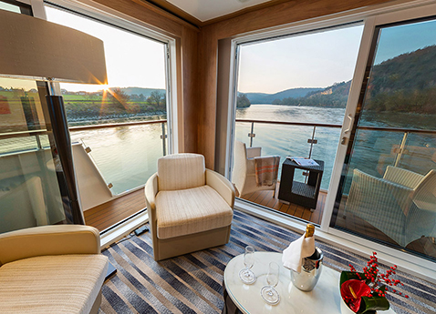 一睹航行在這地區中,這艘皆是陽台艙並擁有最高雅設計的河輪風采。